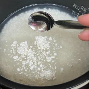 すりきり大さじ1杯(約10g程度)を加えて、いつも通り炊くだけ。
